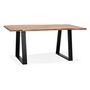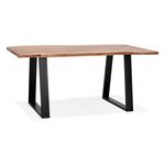 Informations Techniques : Dimensions : L. 160 x l. 90 x H. 77 cm Matières : Plateau : Bois Massif (Acacia) Pieds : Métal Thermolaqué Spécificités : Chic & Tendance Table de Repas Design Forme Rectangulaire Piètement Triangulaire Livré non monté Poids : 50,58 kg Couleur : Naturel & Noir