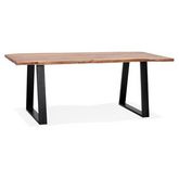 Informations Techniques : Dimensions : L. 95 x l. 200 x H. 77 cm Matières : Plateau : Bois Massif (Acacia) Pieds : Métal Thermolaqué Spécificités : Chic & Tendance Table de Repas Design Forme Rectangulaire Piètement Triangulaire Livré non monté Poids : 98,72 kg Couleur : Naturel & Noir