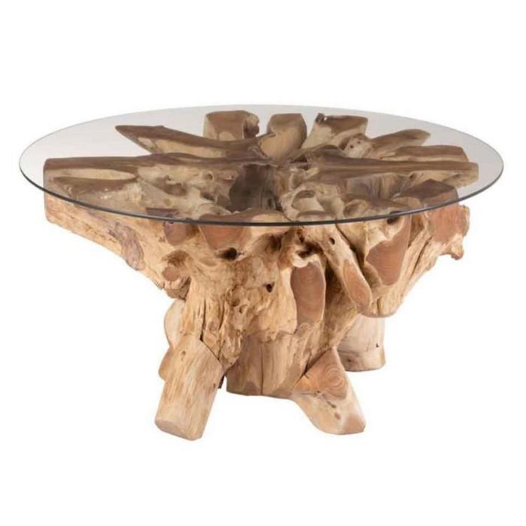Informations Techniques : Dimensions : D. 82,5 x H. 44,5 cm Verre : D. 90 x H. 1 cm Matières : Bois (Teck) & Verre Spécificités : Tendance & Moderne Table de Repas Design Forme Ronde Pied Central en Bois de Teck Convient à un Usage Extérieur Poids : 45 kg Couleur : Naturel