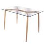 Informations Techniques : Dimensions : L. 115 x l. 75 x H. 75 cm Matière : Verre Spécificités : Pratique & Utile Table de Repas design Forme Rectangulaire Monté sur 4 pieds Visserie apparente Facile d'entretien & d'utilisation Couleur : Transparent & Naturel