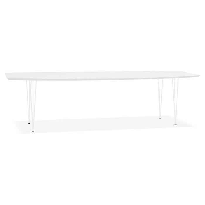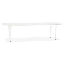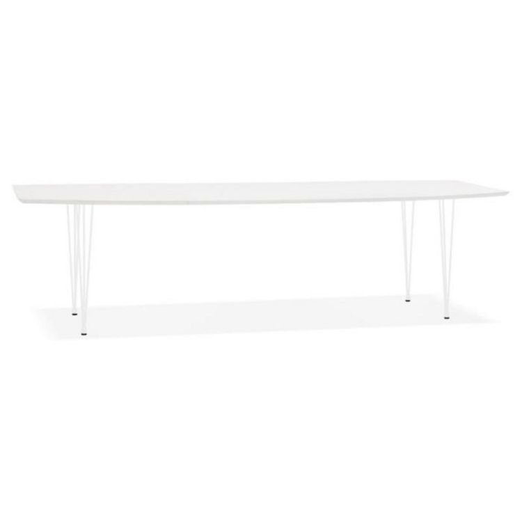 Informations Techniques : Dimensions : L. 170-270 x l. 100 x H. 73 cm Matières : Plateau : MDF Mat Structure : Métal Spécificités : Chic & Tendance Table de Repas Design Extensible Bords Biseautés 2 Rallonges Plateau en forme de Losange Livré non monté Poids : 81,5 kg Couleur : Chêne & Blanc