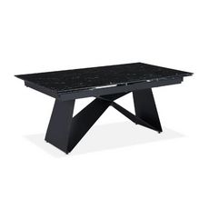 Informations Techniques : Dimensions : L. 180-260 x l. 100 x H. 75 cm Matière : Métal & Verre Spécificités : Tendance & Moderne Table de repas extensible Convient pour 10 couverts Plateau effet marbre noir Forme rectangulaire Nombre de colis : 2 Poids : 111,6 kg Couleur : Noir