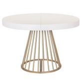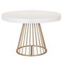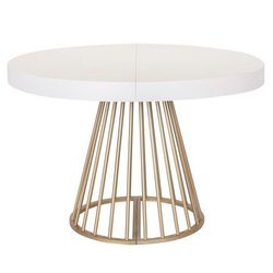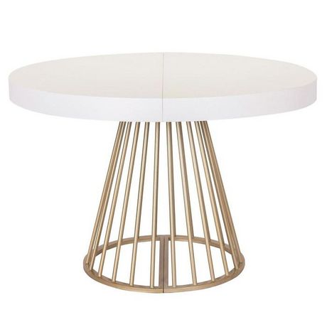 Informations Techniques : Dimensions : L. 110 x l. 110-160-210-260 x H. 76 cm Matières : MDF & Métal Spécificités : Naturel & Moderne Table de Repas design Extensible Forme Ronde Convient pour 12 Couverts À monter soi-même Nombre de colis : 3 Couleur : Blanc