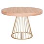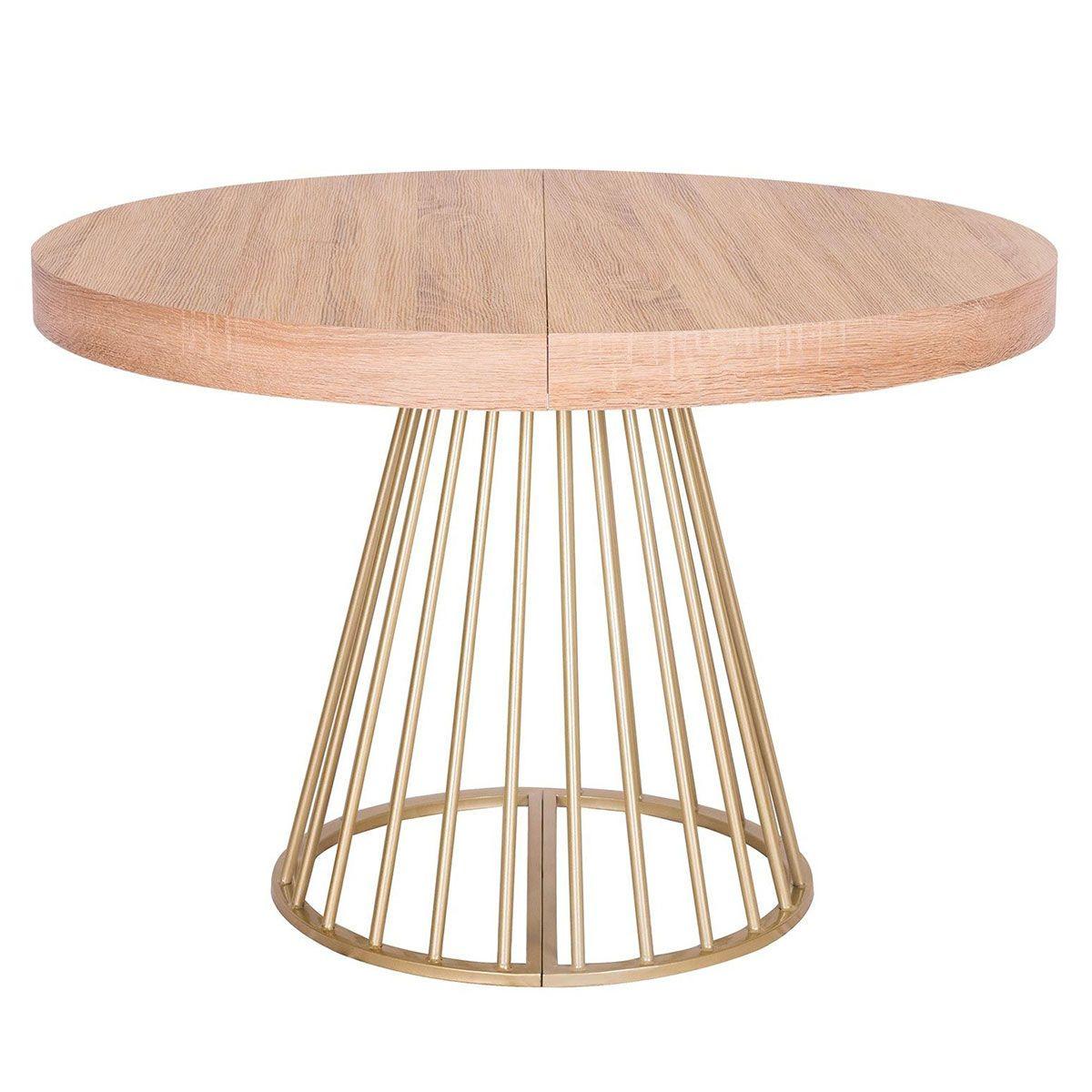Informations Techniques : Dimensions : L. 110 x l. 110-160-210-260 x H. 76 cm Matières : MDF & Métal Spécificités : Naturel & Moderne Table de Repas design Extensible Forme Ronde Convient pour 12 Couverts À monter soi-même Nombre de colis : 3 Couleur : Chêne Clair