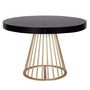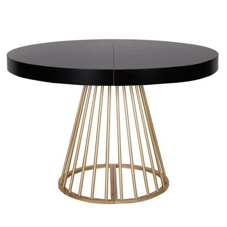 Informations Techniques : Dimensions : L. 110 x l. 110-160-210-260 x H. 76 cm Matières : MDF & Métal Spécificités : Naturel & Moderne Table de Repas design Extensible Forme Ronde Convient pour 12 Couverts À monter soi-même Nombre de colis : 3 Couleur : Noir