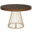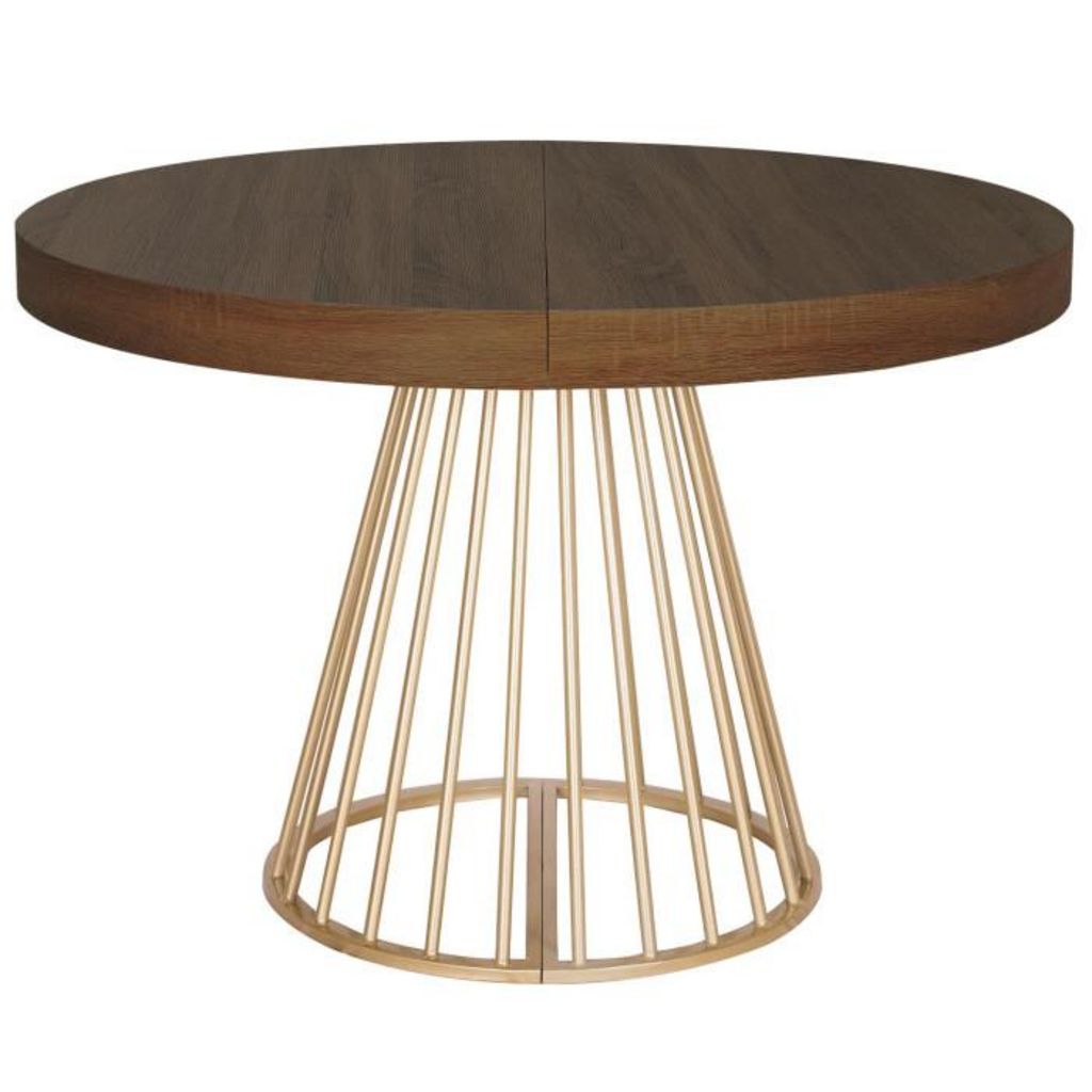 Informations Techniques : Dimensions : L. 110 x l. 110-160-210-260 x H. 76 cm Matières : MDF & Métal Spécificités : Naturel & Moderne Table de Repas design Extensible Forme Ronde Convient pour 12 Couverts À monter soi-même Nombre de colis : 3 Couleur : Noisette