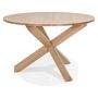 Informations Techniques : Dimensions : D. 120 x H. 75 cm Matière : Bois Massif (Chêne) Spécificités : Chic & Tendance Table de Repas Forme Ronde Style Scandinave Piètement en X Livré non monté Poids : 55,88 kg Couleur : Naturel
