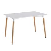 Informations Techniques : Dimensions : L. 115,1 x l. 75,2 x H. 76 cm Matières : Bois & MDF Spécificités : Pratique & Utile Table de Repas design Forme Rectangulaire Monté sur 4 Pieds Facile d'entretien & d'utilisation Couleur : Blanc