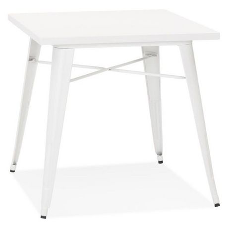 Informations Techniques : Dimensions : L. 76 x l. 76 x H. 76 cm Matière : Métal Thermolaqué Galvanisé Spécificités : Chic & Tendance Table de Repas Design Forme Carrée Style Industriel Nombre de Personnes : 4 Look Vintage & Rétro Facile d'Entretien Livré non monté Poids : 20,9 kg Couleur : Blanc