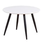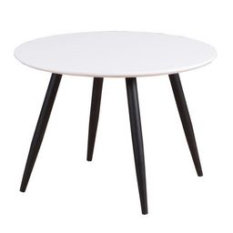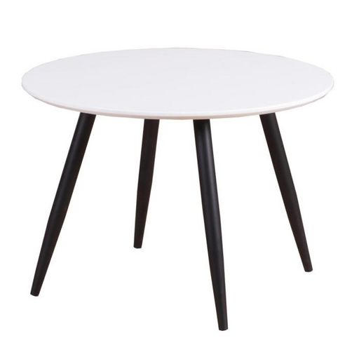 Informations Techniques : Dimensions : D. 60 x H. 50 cm Matières : Plateau : MDF Piètement : Acier Spécificités : Pratique & Tendance Table d'appoint design Pour enfant Forme ronde Poids max supporté : 40 kg Poids : 6,5 kg Couleur : Blanc & Noir