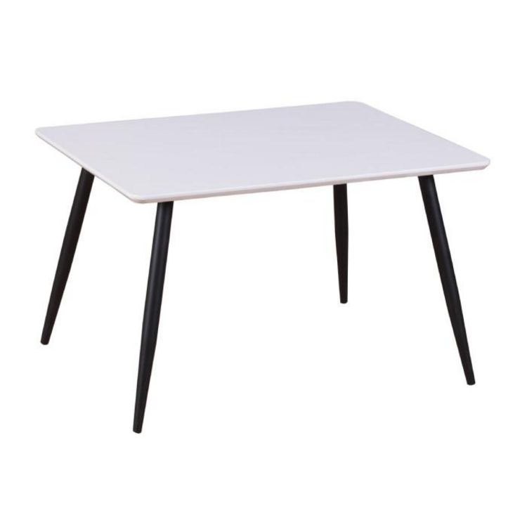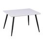 Informations Techniques : Dimensions : L. 80 x l. 60 x H. 50 cm Matières : Plateau : MDF Piètement : Acier Spécificités : Pratique & Tendance Table design Pour enfant Forme rectangulaire Poids max supporté : 60 kg Poids : 8 kg Couleur : Blanc & Noir