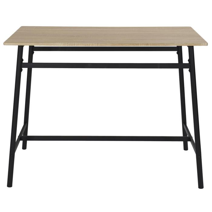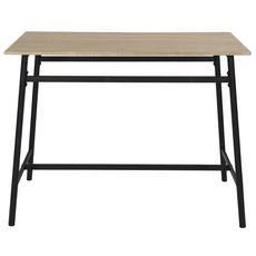 Informations Techniques : Dimensions : L. 116 x l. 60 x H. 90 cm Matière : Plateau : MDF Piètement : Métal Spécificités : Pratique & Tendance Table haute design Forme rectangulaire À monter soi-même Poids : 12,5 kg Couleur : Naturel & Noir