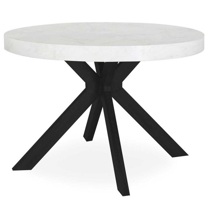 Table Ronde Extensible Zefane 160-260cm Noir & Effet Marbre