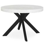 Informations Techniques : Dimensions : L. 110 x P. 160-210-260 x H. 75 cm Matières : MDF & Métal Spécificités : Moderne & Design Table extensible Forme ronde Pouvant accueillir jusqu'à 10 couverts Nettoyage avec un chiffon humide À monter soi-même Nombre de colis : 2 Poids : 64 kg Couleur : Noir & E