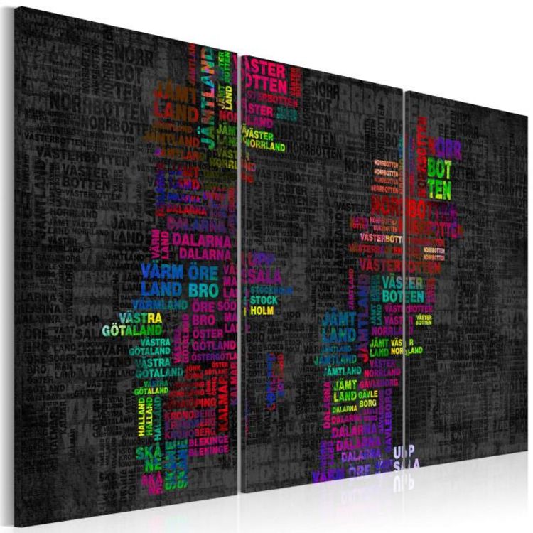 Tableau 3 Panneaux Carte de la Suède Noms de Villes Colorés