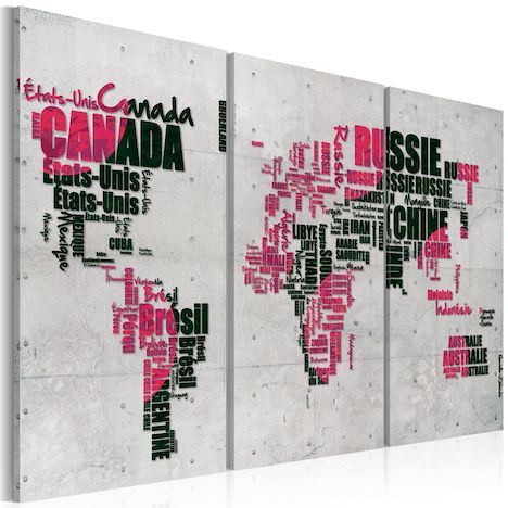 Tableau 3 Panneaux Carte du Monde en Français