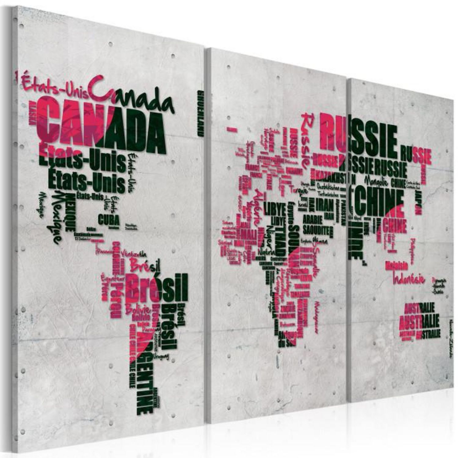 Tableau 3 Panneaux Carte du Monde en Français