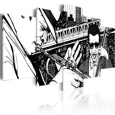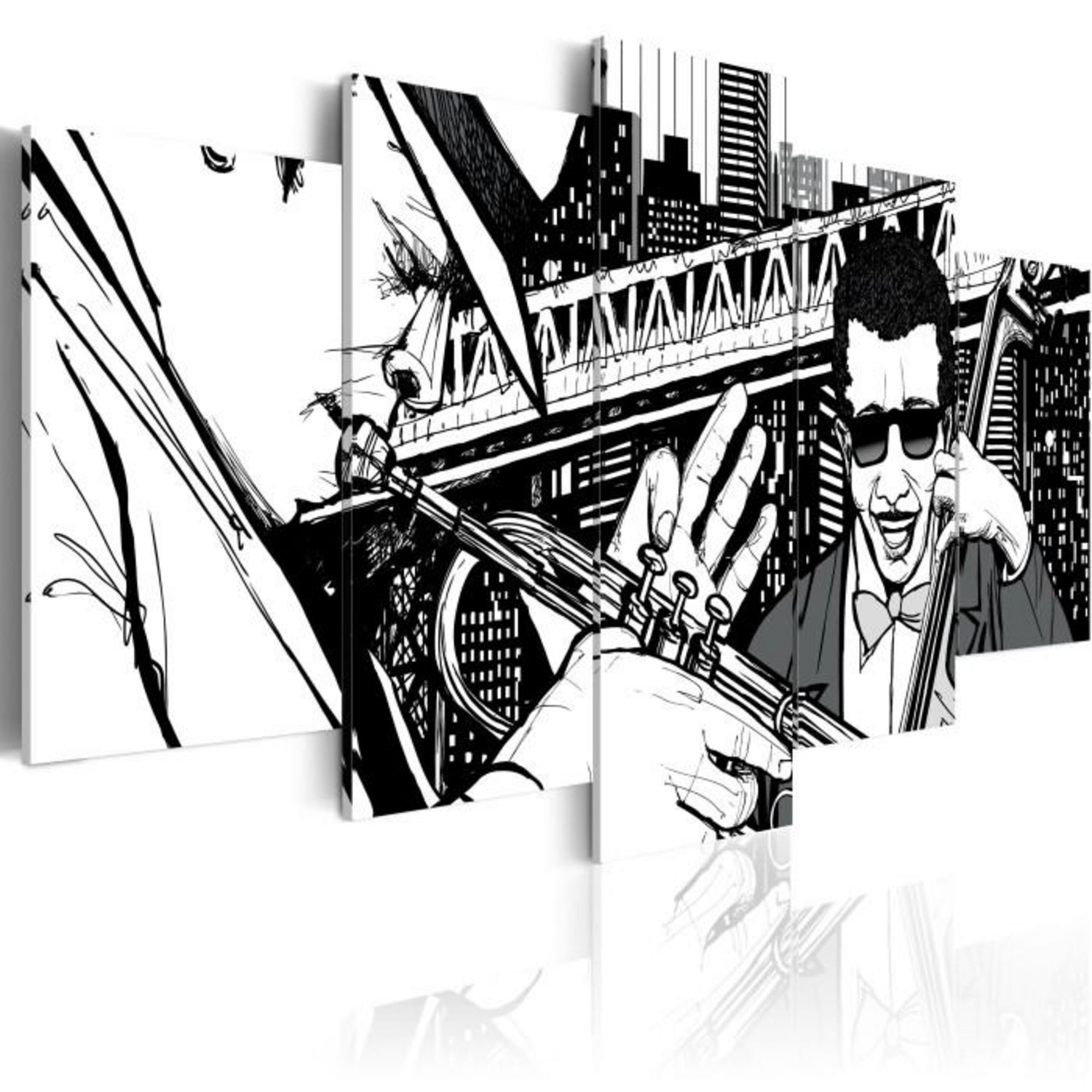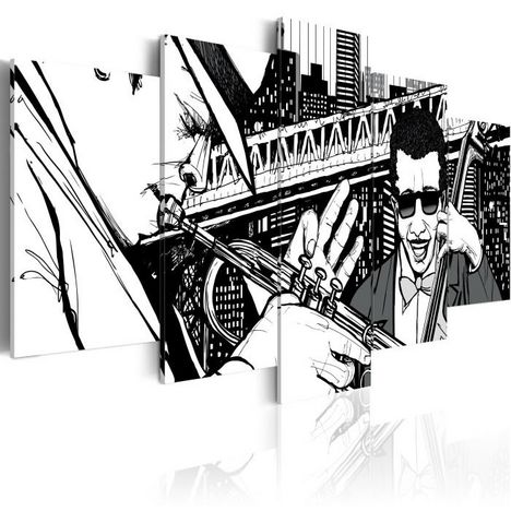 Tableau 5 Panneaux Concert de Jazz sur Fond de Grattes-Ciel New York
