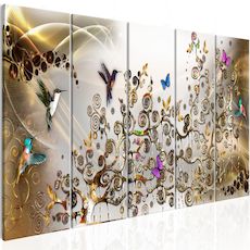Tableau 5 Panneaux Hummingbirds Dance Gold Narrow