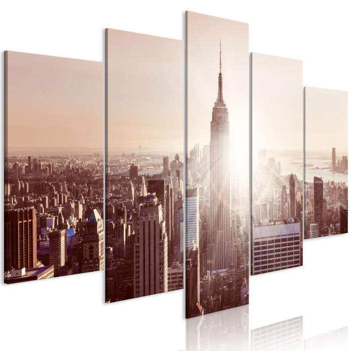 Tableau 5 Panneaux Sun Over Manhattan Wide Brown