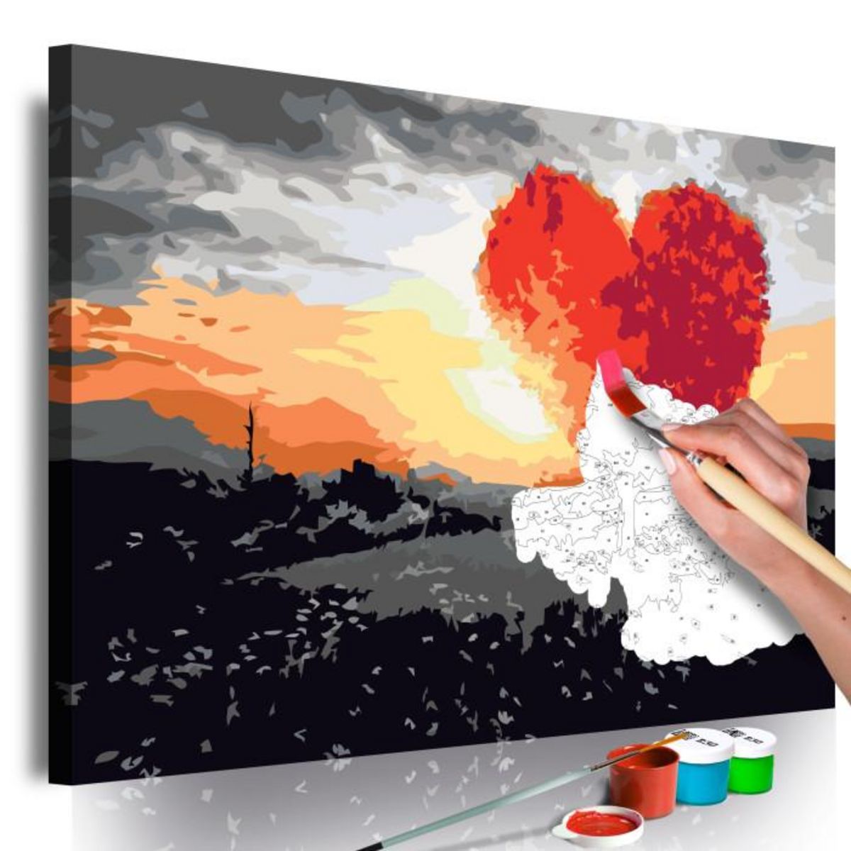 Tableau à Peindre Soi-Même Arbre en Forme de Coeur Lever de Soleil 40x60cm