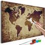 Tableau à Peindre Soi-Même Carte du Monde Nuances de Brun 40x60cm