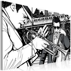 Tableau Concert de Jazz sur Fond de Grattes-Ciel de New York