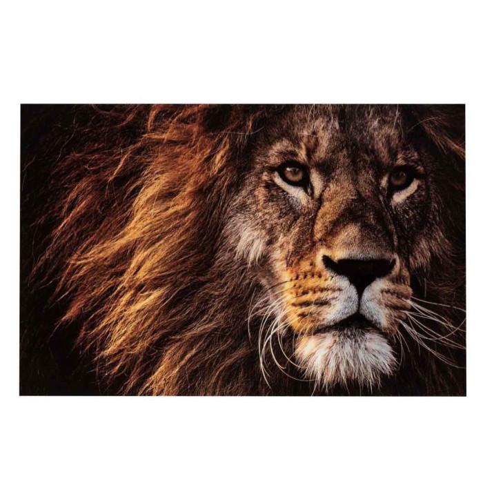 Tableau Déco en Verre Lion 100x150cm Marron & Noir
