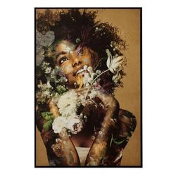 Tableau Déco Femme Avec Fleurs 83x123cm Multicolore