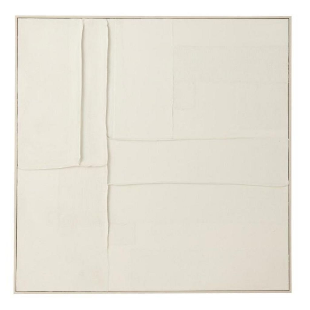 Informations Techniques : Dimensions : L. 102,6 x l. 4,5 x H. 102,6 cm Matières : Toile, Bois (Pin) & Polystyrène Spécificités : Déco & Épuré Tableau mural Motif abstrait Poids : 3 kg Couleur : Blanc