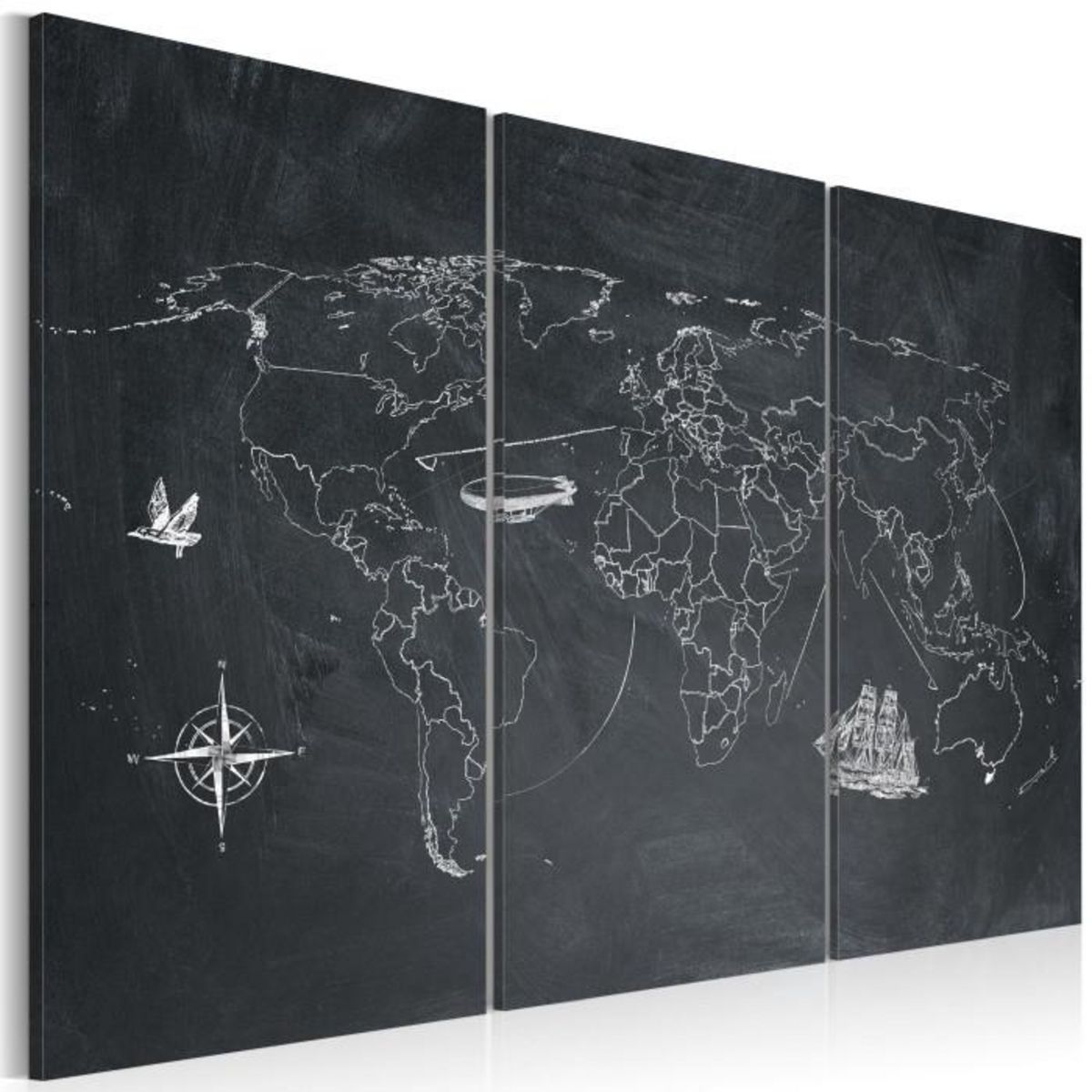 Tableau Imprimé 3 Panneaux Voyage Autour du Monde