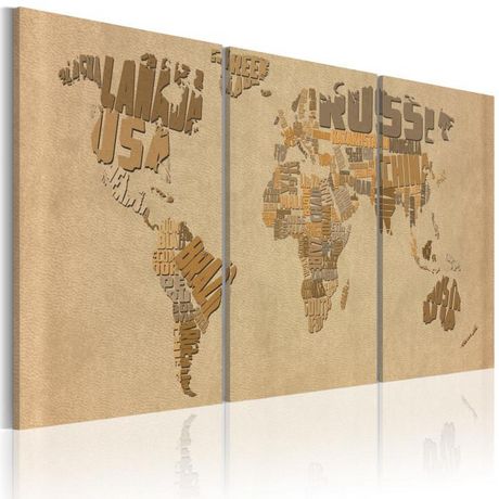 Tableau Imprimé Carte du Monde en Beige & Brun