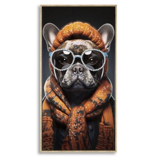 Informations Techniques : Dimensions : L. 42,5 x l. 2,8 x H. 82,5 cm Matières : Métal, Bois (Sapin) & Toile Spécificités : Déco & Original Tableau laqué rectangulaire Imprimé bulldog avec lunettes Quelques détails peints à la main Poids : 1 kg Couleur : Multicolore