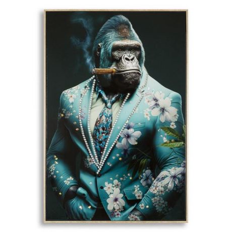 Informations Techniques : Dimensions : L. 62 x l. 4 x H. 92 cm Matières : Métal, Bois (Sapin) & Toile Spécificités : Déco & Original Tableau laqué rectangulaire Imprimé gorille avec cigare Quelques détails peints à la main Poids : 1,5 kg Couleur : Multicolore