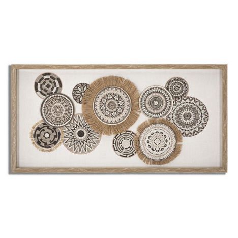 Informations Techniques : Dimensions : L. 70 x l. 2,8 x H. 35 cm Matières : Toile & Bois (Pin) Spécificités : Déco & Original Tableau rectangulaire Imprimé géométrique Quelques détails peints à la main Poids : 2,5 kg Couleur : Marron