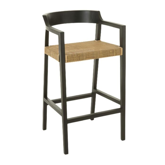 Informations Techniques : Dimensions : L. 55 x l. 53 x H. 100 cm Assise : H. 78 cm Matière : Bois de teck Spécificités : Tendance & Moderne Chaise de bar design Avec accoudoirs Capacité de charge maximale : 130 kg Poids : 9,1 kg Couleur : Noir