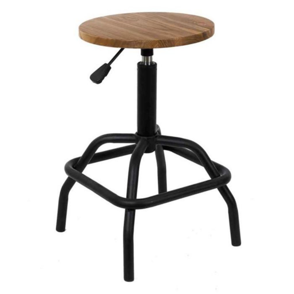 Informations Techniques : Dimensions : D. 37 x H. 58-73 cm Matières : Assise : Bois (Orme) Piètement : Métal & Fer Spécificités : Chic & Tendance Tabouret de Bar Forme Ronde Assise Confortable Hauteur Réglable Style Vintage & Rétro Notice de Montage incluse Poids : 4,6 kg Couleur : Naturel