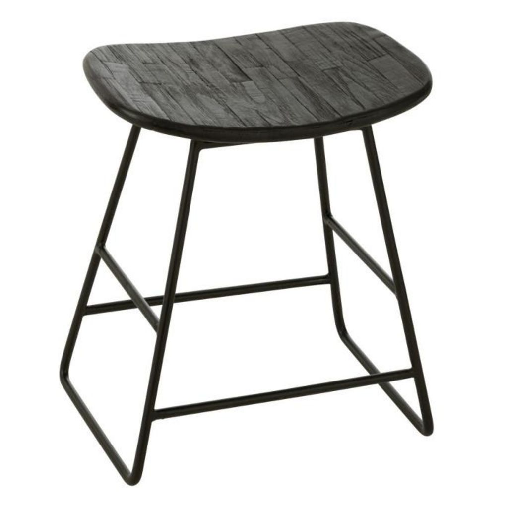 Tabouret en Bois Teck 45cm Noir