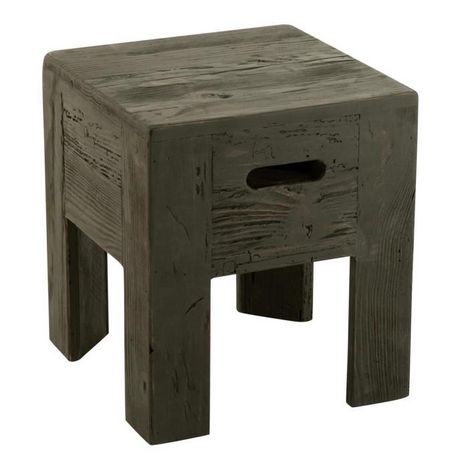Informations Techniques : Dimensions : L. 35 x l. 35 x H. 40 cm Matière : 100% Bois Recyclé (Pin) Spécificités : Solide & Pratique Tabouret carré Avec 4 pieds Poids : 5,6 kg Couleur : Noir