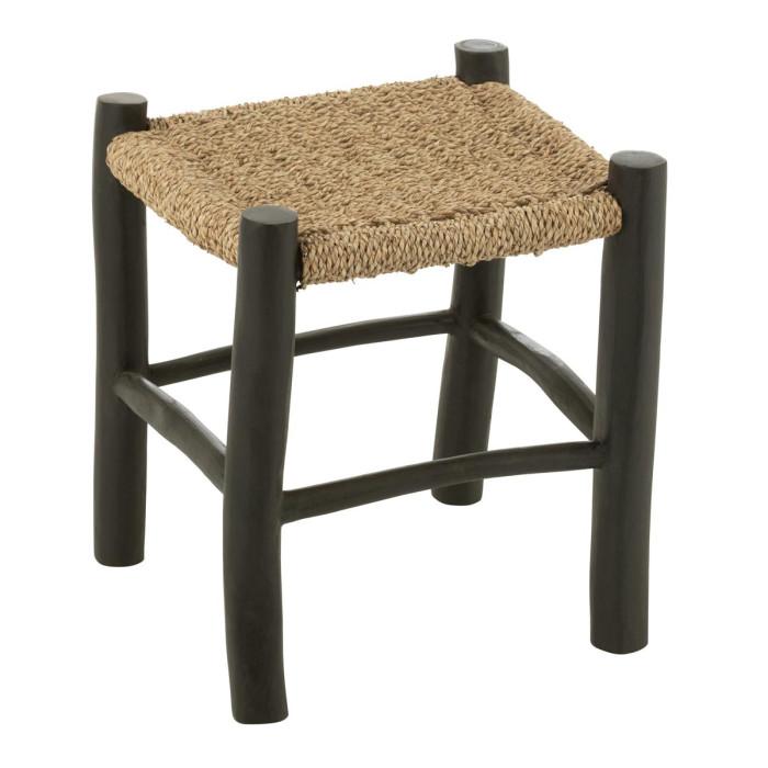 Informations Techniques : Dimensions : L. 40 x l. 40 x H. 45 cm Matières : 70% Bois (Teck) & 30% Jonc de Mer Spécificités : Solide & Tendance Tabouret carré Avec repose-pieds Poids : 4,25 kg Couleur : Naturel & Noir