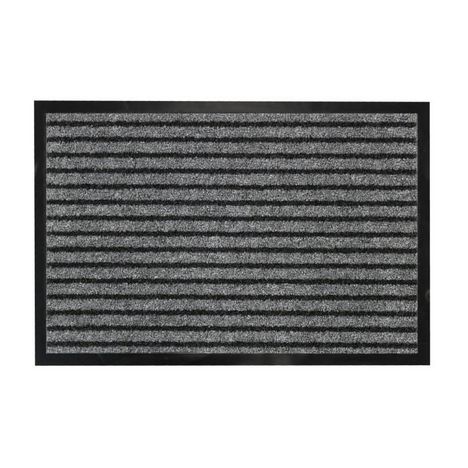 Informations Techniques : Dimensions : L. 60 x l. 40 x H. 1 cm Matières : Dessus : 100% Polypropylène Dessous : 100% PVC Spécificités : Pratique & Utile Tapis d'entrée anti-poussière Grattoir Anti-dérapant Forme rectangulaire Poids : 0,7 kg Couleur : Noir & Gris