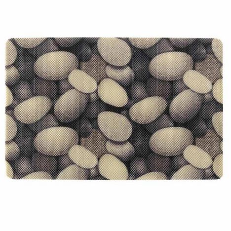 Informations Techniques : Dimensions : L. 60 x l. 40 cm Matière : PVC Spécificités : Tendance & Design Motif : Galets Facile d'entretien et d'utilisation Couleur : Naturel