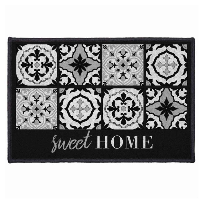 Informations Techniques : Dimensions : L. 60 x l. 40 cm Matières : Polyamide & Latex Spécificités : Antidérapant Pratique & Déco Texte : Sweet Home Couleur : Noir