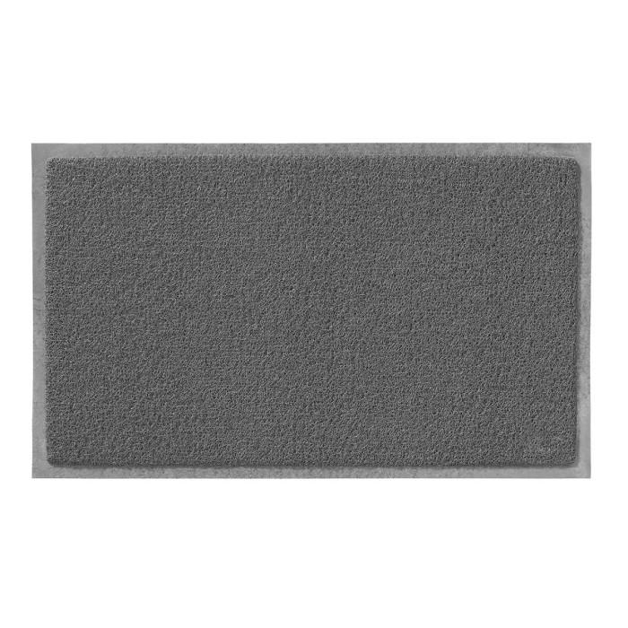 Informations Techniques : Dimensions : L. 75 x l. 45 x H. 1 cm Matière : 100% PVC Spécificités : Pratique & Utile Tapis d'entrée Pour l'extérieur Type tapis spaghetti Nettoyage facile Anti-dérapant Brossant et grattant Forme rectangulaire Poids : 0,66 kg Couleur : Gris