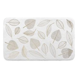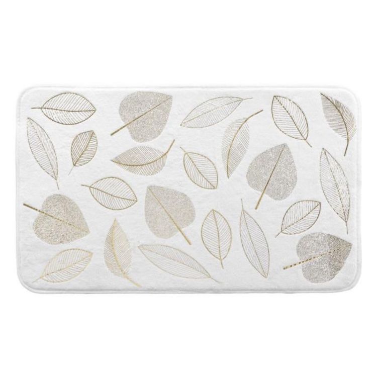 Informations Techniques : Dimensions : L. 75 x l. 45 x H. 0,8 cm Matière : 100% Polyester Spécificités : Pratique & Tendance Tapis de bain déco Microfibre antidérapant Imprimé métallisé Design feuilles Coins arrondis Forme rectangulaire Poids : 0,17 kg Couleur : Or