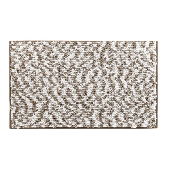 Informations Techniques : Dimensions : L. 45 x l. 75 cm Matière : 100% Polyester Spécificités : Pratique & Utile Tapis de bain Motif moucheté Antidéparant Finition absorbante Lavage à 30° Forme rectangulaire Poids : 0,34 kg Couleur : Sable & Marron
