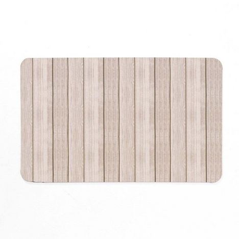 Informations Techniques : Dimensions : L. 80 x l. 50 cm Matières : Polyester & Caoutchouc Spécificités : Déco & Pratique Tapis de bain imprimé bois Ultra-absorbant et antidérapant Séchage rapide Forme rectangulaire Entretien : Pas de lavage Pas de séchage en machine Pas de repassage Poids : 0,75 kg