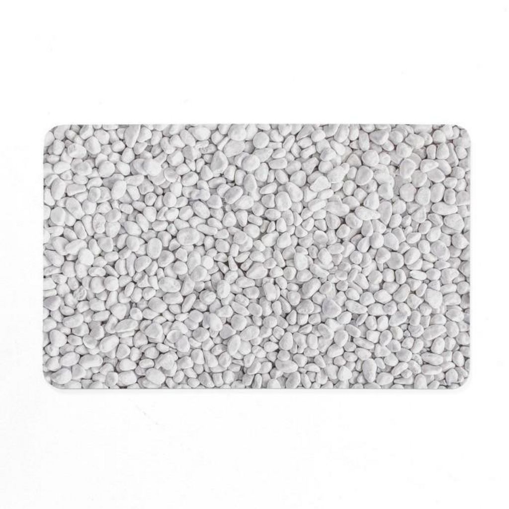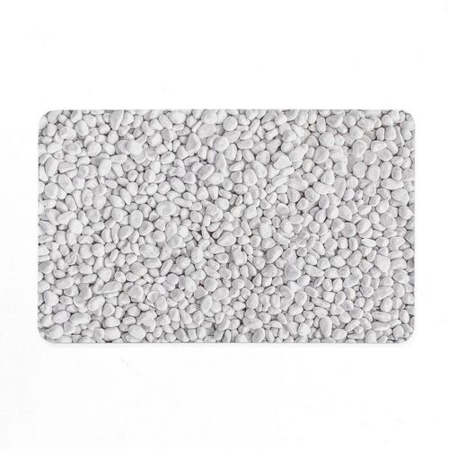 Informations Techniques : Dimensions : L. 80 x l. 50 cm Matières : Polyester & Caoutchouc Spécificités : Déco & Pratique Tapis de bain imprimé galet Ultra-absorbant et antidérapant Séchage rapide Forme rectangulaire Entretien : Pas de lavage Pas de séchage en machine Pas de repassage Poids : 0,75 kg