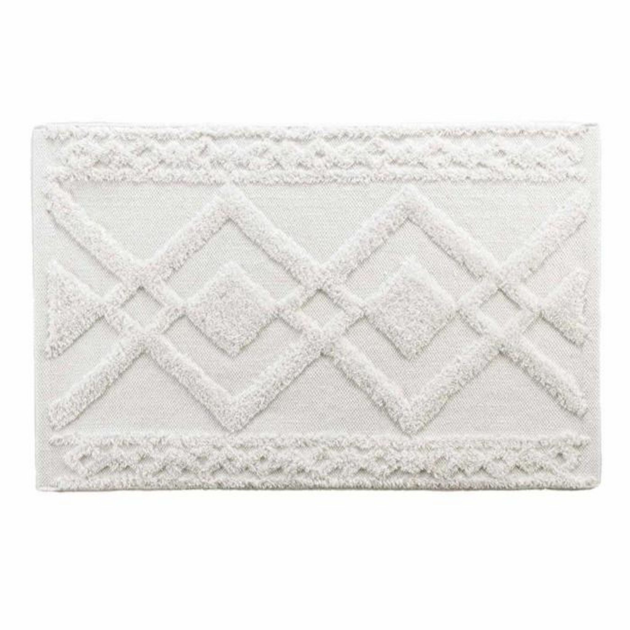 Informations Techniques : Dimensions : L. 80 x l. 50 cm Matière : 100% Coton Spécificités : Résistant & Utile Tapis de bain tufté jacquard Motif losange relief Forme rectangulaire Entretien : Lavage à 40° Séchage modéré Pas de repassage Certification : Label Oeko-Tex standard 100 Poids