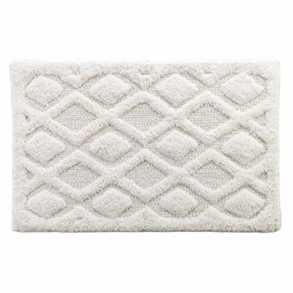 Informations Techniques : Dimensions : L. 80 x l. 50 cm Matière : 100% Coton Spécificités : Résistant & Utile Tapis de bain tufté jacquard Motif losange relief Forme rectangulaire Entretien : Lavage à 40° Séchage modéré Pas de repassage Certification : Label Oeko-Tex standard 100 Poids